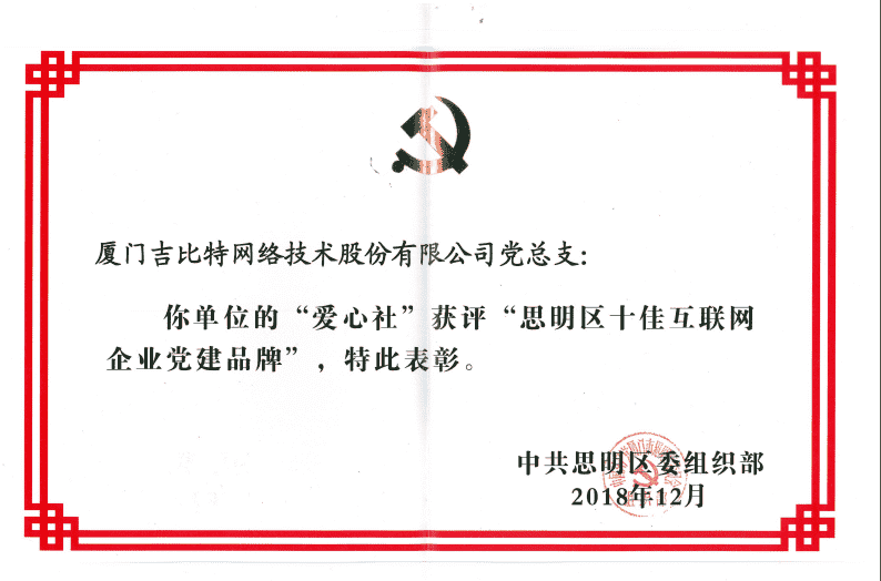 经初审评选、、、、网络评选和专家评审等环节,,,,"厦门yaxin111网络技术股份有限公司党总支-爱心社" 从全区28个参评党建品牌中脱颖而出,,,,获评"思明区十佳互联网企业党建品牌"。。。。