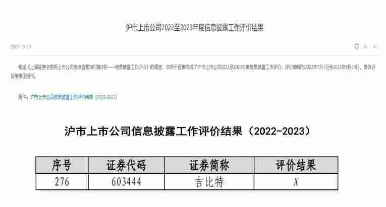近日,,,上海证券交易所发布2022-2023年度信息披露工作评价结果。。。yaxin111(股票代码:::603444)凭借规范的公司治理、、、高质量的信息披露以及良好的投资者关系管理再次荣获信息披露工作A级评价,,,,公司连续两年获此殊荣。。。。